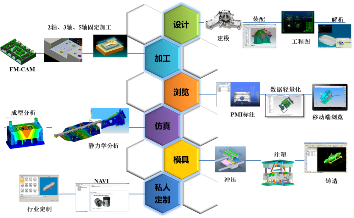 SINOVATION体现国际先进设计制造水平的自主版权三维CAD/CAM软件,软件易学易用;具有混合建模、参数化设计、直接建模、钣金以及产品设计动态导航技术;提供CAM加工技术、冲压模具、注塑模具设计以及消失模设计加工、激光切割控制等专业技术;提供产品制造信息PMI及可以与PDM、CAPP、MPM等管理软件紧密集成的三维数模轻量化浏览器;支持各种主流CAD数据转换和用户深层次专业开发。