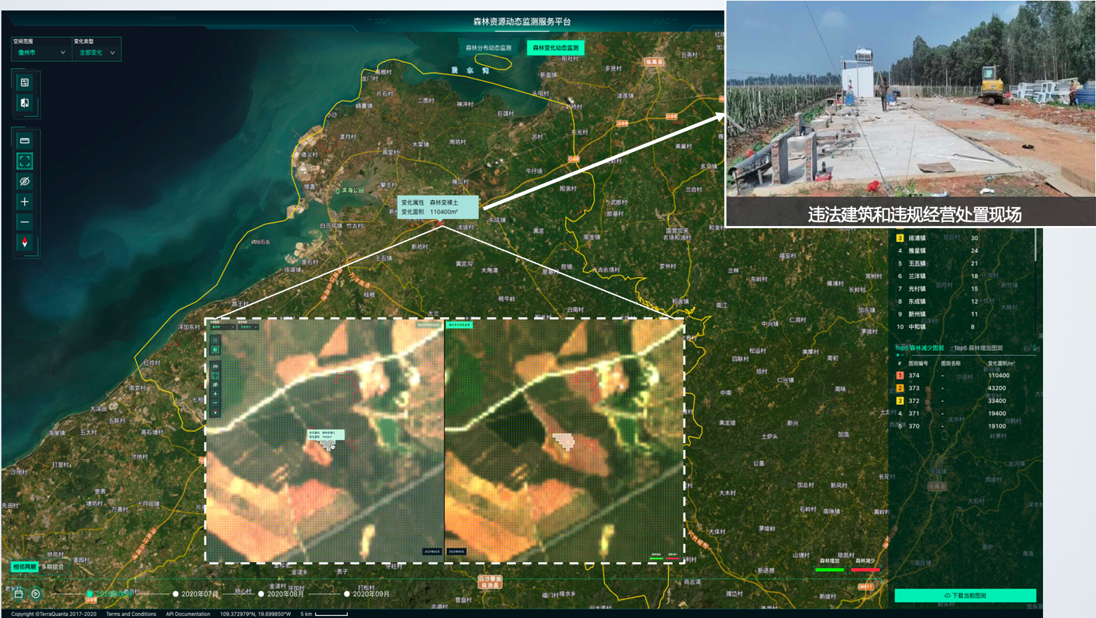 森林资源分布广阔且地形复杂,人工现地调查任务重、难度大、风险高。同时,人工现地巡查和摄像头局部勘察,难以全面、及时的发现森林破坏事件,案件获取滞后,调查取证难。大量的人工干预、重复的基础设施建设,消耗了巨大的人力和计算资源,大大拉高了监管成本。