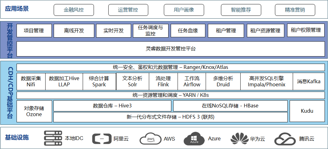 灵睿大数据平台一个PaaS平台产品,提供多租户资源管理、数据集成、数据开发、数据管理、数据服务等全方位的产品服务,一站式开发管理的界面,帮助客户专注于数据价值的挖掘和探索。平台基于Spark、Hadoop作为核心的计算、存储引擎,提供了海量数据的离线加工分析、数据挖掘的能力。通过灵睿大数据平台,可对数据进行传输、转换、集成的操作,从不同的数据存储引入数据,对数据进行转化和开发,最后将数据输送到其他数据系统