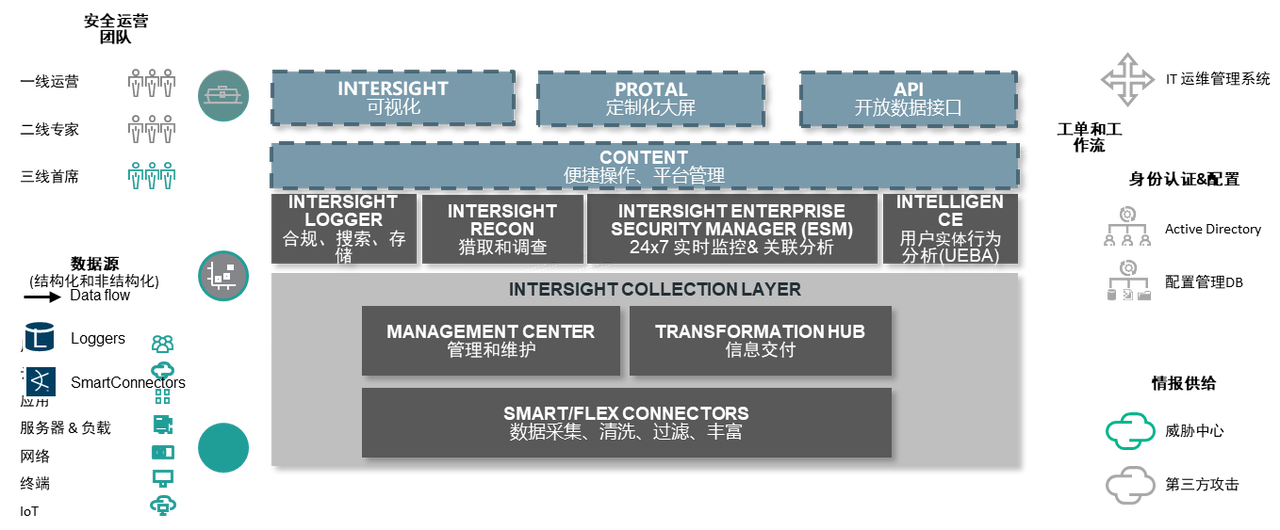InterSight 安全大数据分析平台 V1.0能够对各种多源日志数据源信息进行收集、过滤、格式化、存储、归档,并提供了风险分析、异常检测、交叉分析等能力。