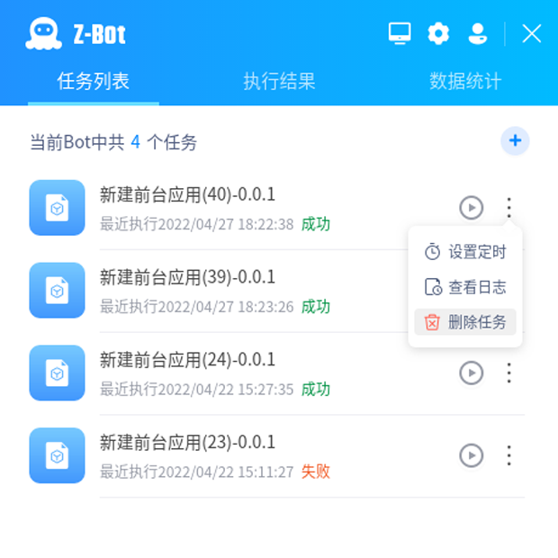 实在RPA机器人软件是自动化流程的执行终端,可多任务并行、高效稳定完成大量繁琐任务。既可本地设定定时任务及多触发方式,亦可由智能中枢统一调度,适应不同场景的自动化执行或辅助。具备多任务管理、执行过程可视化、日志录屏回放查看等功能,本地即可掌握机器人运行情况。
