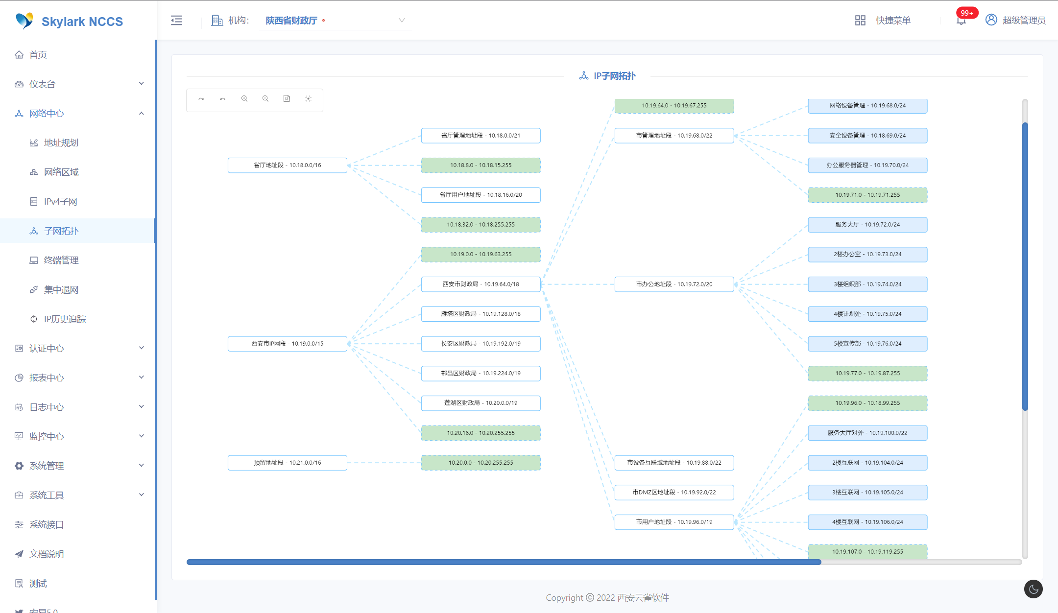 《网络集中控制系统V1.0》在不需要用户替换现有网络设备的基础上,用较低的投入实现了网络基础设施的数字化升级,做到无线/有线、多层级网络、IP资源、网络安全、联网设备台账、交换机融合精准管控,通过一套系统替代多套独立的系统将业务办理提升至秒级,达到了软件定义网络的效果,对基础网络的管理更精细、网络更安全、工作更简单。