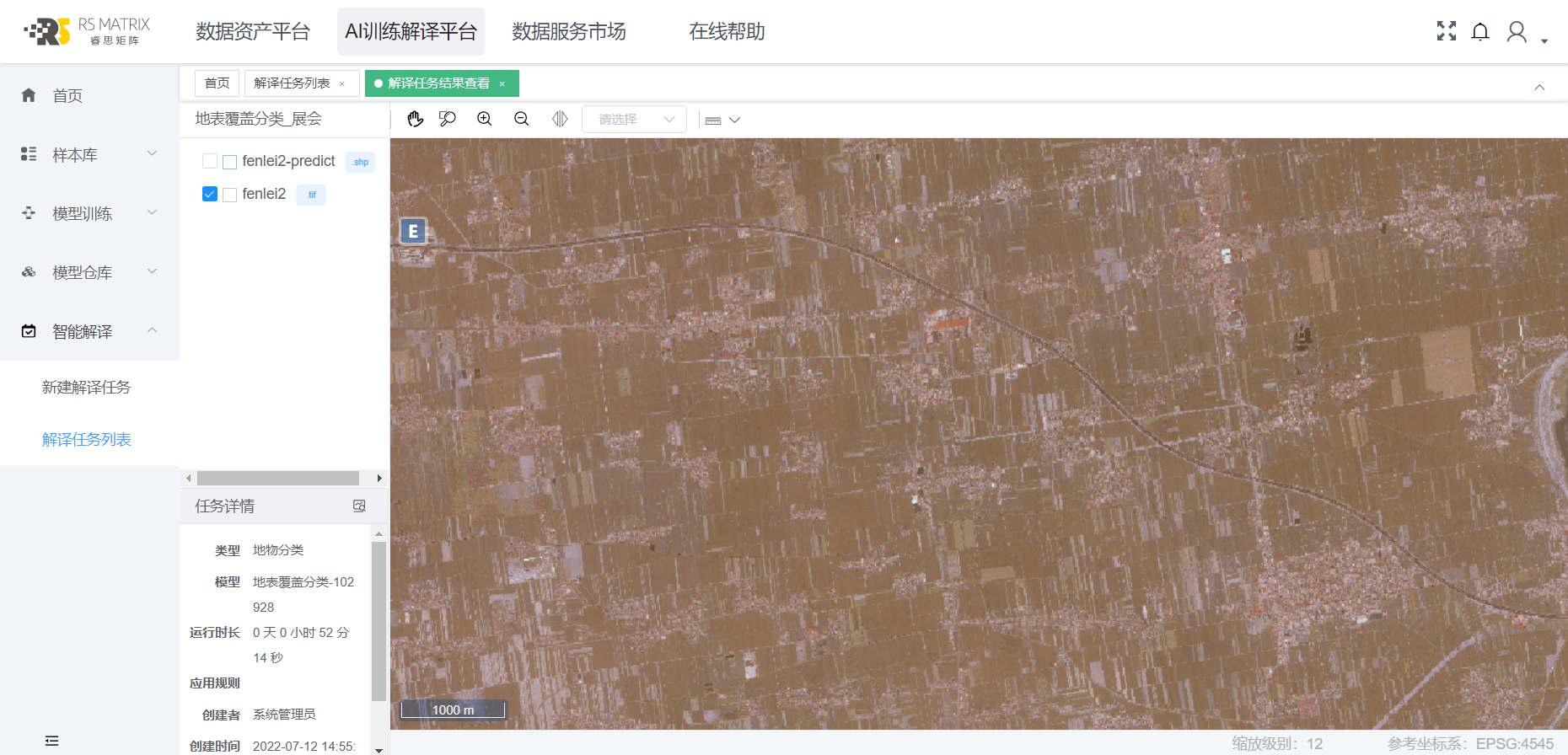锐思数智自主研发的“RS Matrix 睿思矩阵”,是一款基于深度学习算法的遥感影像全场景智能解译平台软件。基于此平台软件形成的遥感影像地物分类/提取智能解决方案,利用人工智能技术与遥感技术的结合,可提供多源遥感影像从二三维数据存管、样本库建设与管理、样本在线协同编辑、AI训练解译、解译后分析等一体化、全流程的解决方案,能广泛用于自然资源、国土测绘、农林水利等诸多领域,应用于譬如地表覆盖分类、农田面积估算、农作物种植类型监测、水体提取、河湖岸线监测、建筑物提取、路网提取、建筑用地提取等地物分类场景应用中。使其相对比传统作业,部分应用场景生产提效可达70%以上,生产效率实现了从月级到小时级的跨越,且实现了部分应用场景通过传统方式无法解决的难题,实现了生产方式重大的变革。