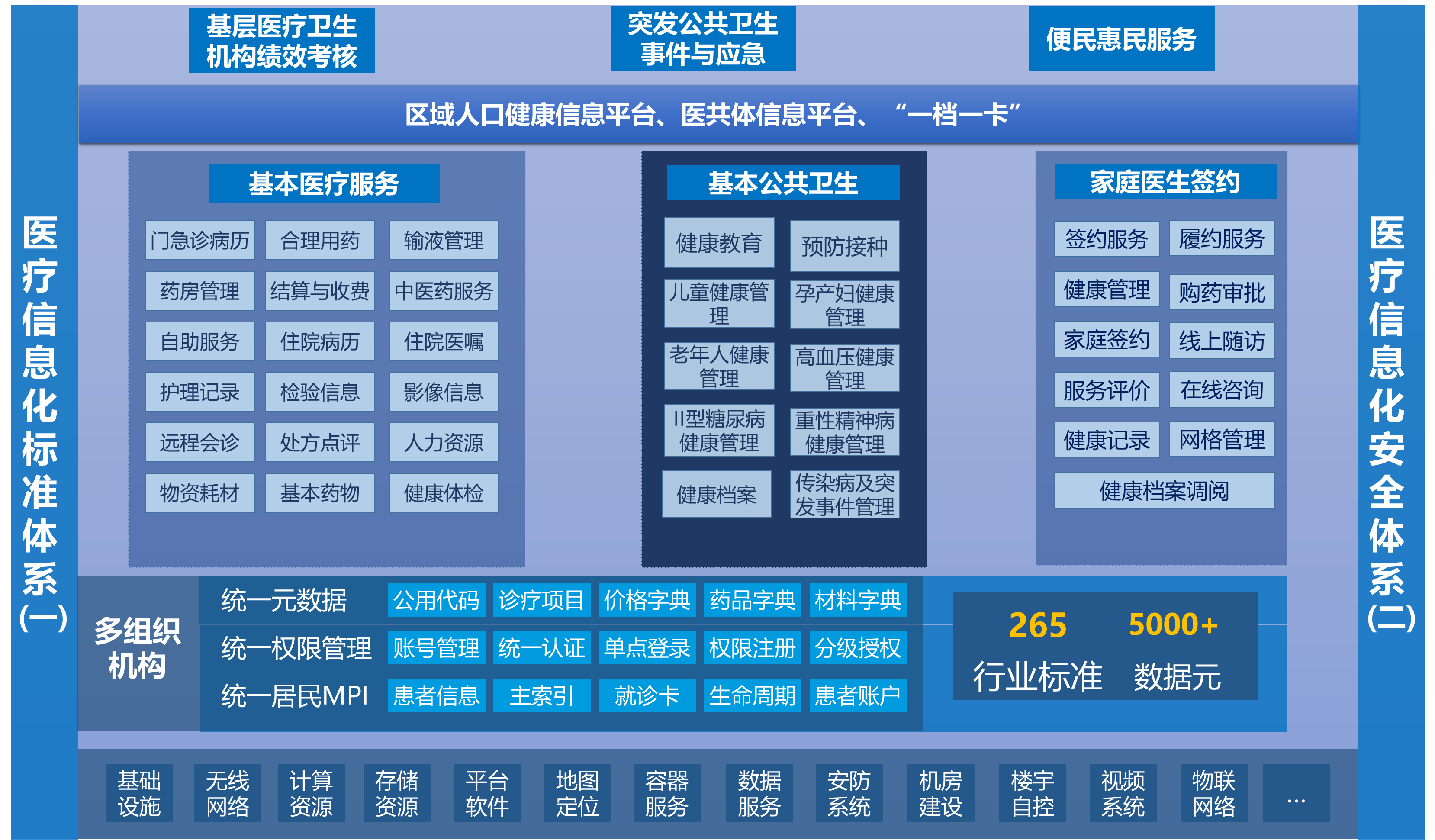 加强顶层设计,统一标准规范、整合信息资源、实现互联互通,提高卫生资源利用效率和质量。以居民健康为中心,以卫生业务为主线,服务居民,方便管理,为实现人人享有基本医疗卫生服务的目标做好服务。