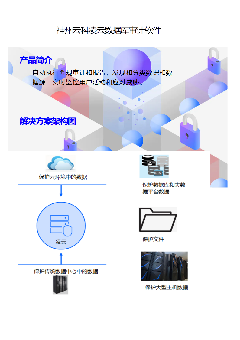 神州云科凌云数据库审计软件是面向现代数据环境的全面数据安全与数据合规解决方案。借助智能的全面的数据安全方案扫描数据漏洞,阻止数据丢失,保护数据隐私。