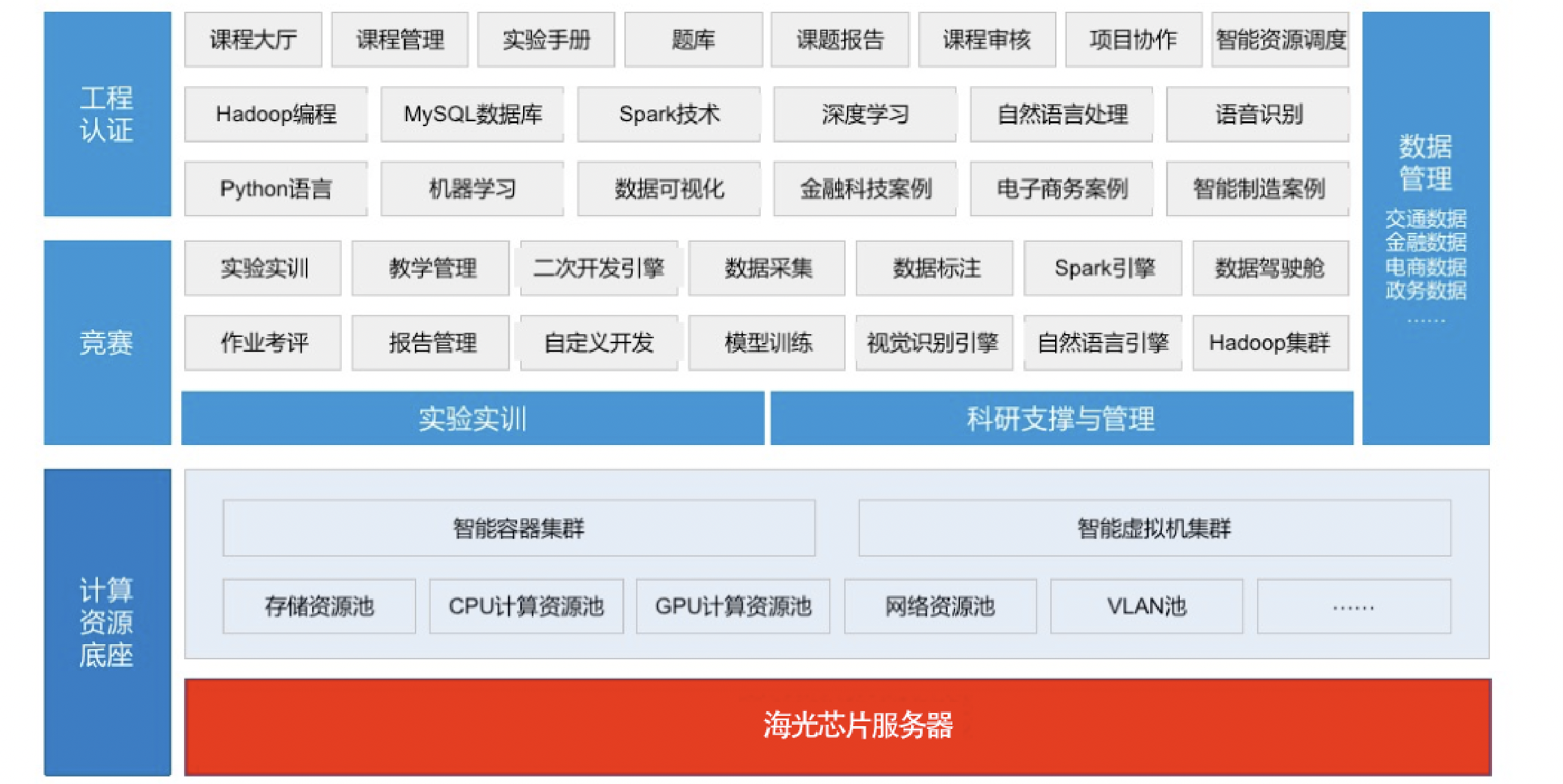- 精品课程/实验资源:专业培养大纲无缝对接、真实行业案例、数据集资源、提供定制化课程/实验开发