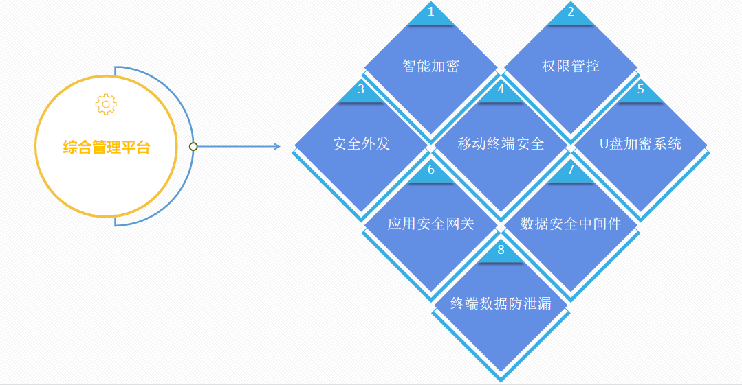 华途电子文件安全管理系统由基于Web界面的综合管理平台和智能加密、权限管控、安全外发、应用安全网关、数据安全中间件、移动终端安全、U盘加密系统、终端数据防泄漏八大核心组件组成,用于对用户电脑终端、移动办公、各类应用系统上的数据,从生产、存储、流程、外发到销毁进行全生命周期保护,保护范围涵盖终端电脑、智能终端及各类应用系统。管理平台可配置基于用户角色的访问控制和系统管理选项,用户通过管理平台可依据需求统一制定安全管控策略,并集中下发到各模块,从而实现对企事业单位重要数据的全方位保护。
