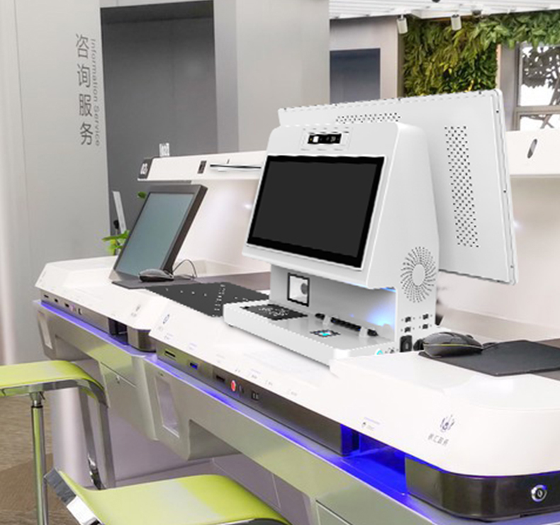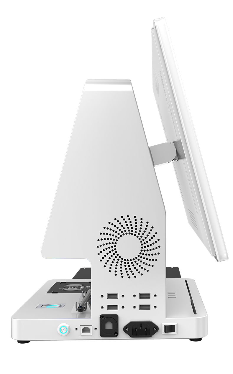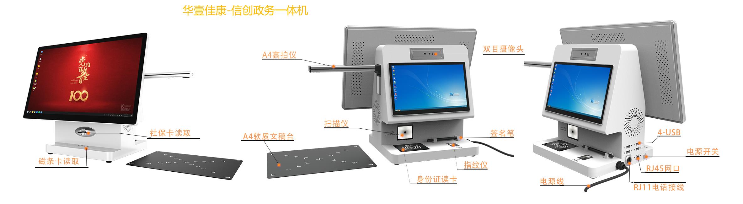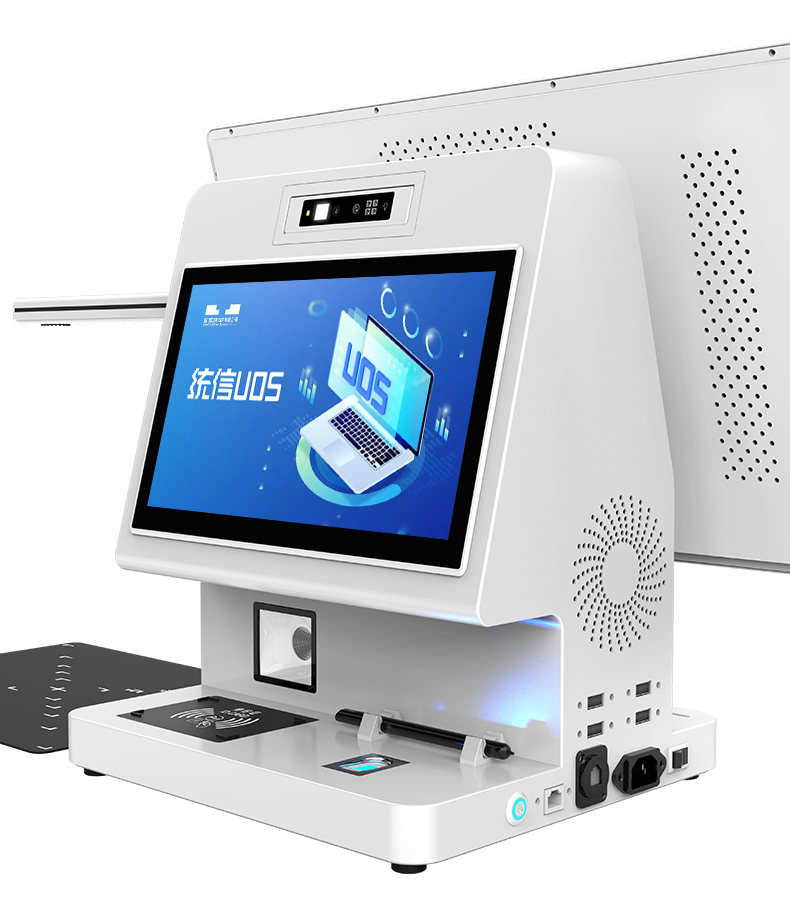 产品设计具有多种功能,集成了800W像素高拍仪,200W双目摄像头,满足人脸识别及红外拍摄,社保卡,身份证读取模块、二维码扫描、磁条卡读取、指纹仪识别、电子签名、具有WIFI、BT、功能,设有USB*4、RJ45、RJ11等各种外设接入的端口,充分满足了市场的业务办理需求。