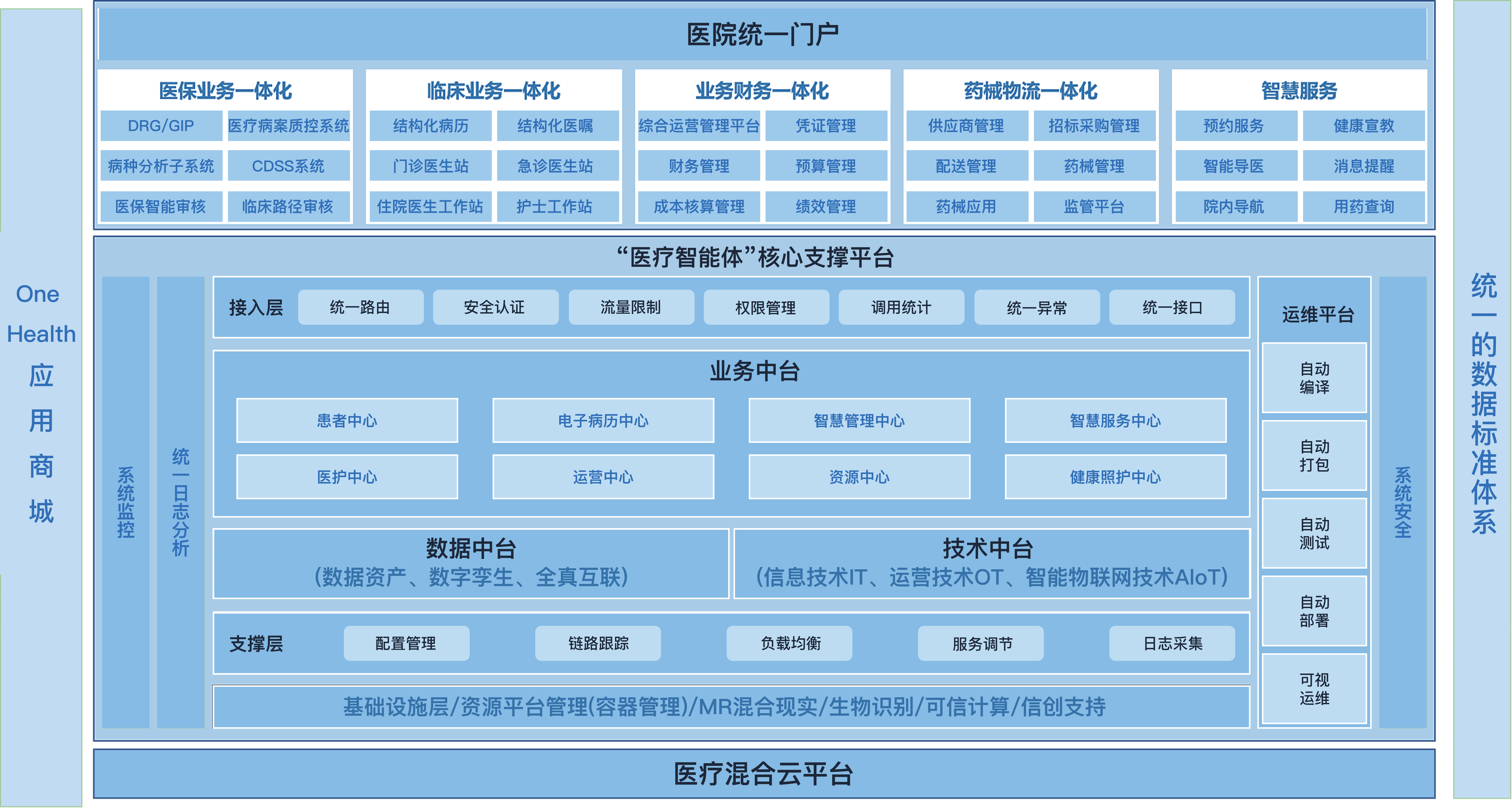充分活用人工智能、大数据、医疗大型语言模型,以及数字孪生、全真互联、智能物联网等技术驱动下,以居民健康为中心,以电子病历为主线,搭建“医疗智能体”工具,贯穿临床、科研、管理、质控、服务等多个维度,将医院分散的各业务系统进行整合再造,为医院数据整合与智能应用提供有力支撑,为释放医院全量数据资源价值提供有力工具;同时,通过多种终端和形式,对医院进行数字化模拟和仿真,实现对真实场景全面感知、连接、交互的一系列业务集合与数实融合创新模式,极大的为医疗服务提供了全新的可能性,最终助力医院打造全流程、全周期、全病程医疗服务体系。