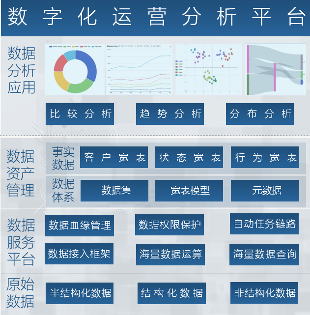 数字化运营分析系统是一套为企业提供经营数据挖掘,掌握企业经营状态,提高企业核心竞争力的软件产品。它能够有效的助力企业提升经营效率,降低经营风险,提升客户服务质量。